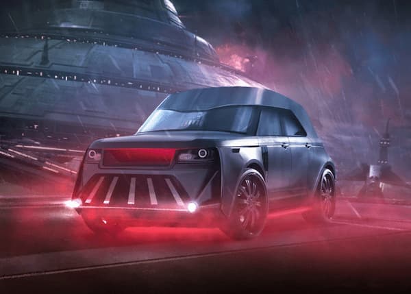 The all black exterior of the Range Rover is symbolic of Vader's identity during the initial movies. We don’t often see behind the mask which is why we picked tinted windows to mask his true identity. The grill is reminiscent of the vents that help him to breathe, and the red beams portray his famous lightsaber.